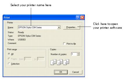 See these sections for instructions on selecting printer settings: