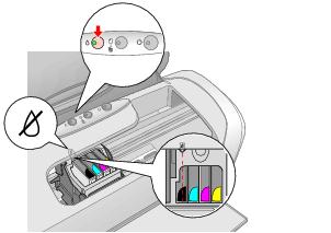 Note: You cannot continue printing with one ink cartridge empty, even if the other cartridges still contain ink. Before printing, replace the empty cartridge.