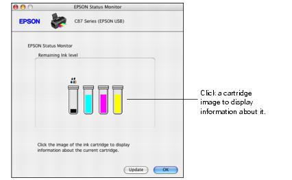 Note: You can also use the Status Monitor to find out which cartridge is out of ink. See Checking the Ink Supply for more information.