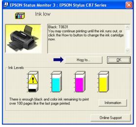 You'll also see a message on your screen when you print telling you which cartridge is low or empty.