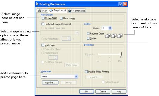 You can use advanced settings for color matching, printing at a higher resolution, or selecting a variety of special effects and layouts.