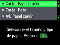 Seleccione el tamaño y el tipo de papel que tiene cargado.