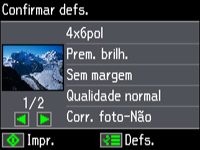 as configurações de impressão exibidas na tela LCD, pressione o