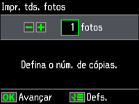 mais de uma cópia de todas as fotos, pressione o botão