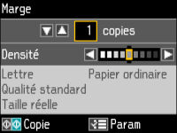 les paramètres de copie que vous avez sélectionné lors de la copie