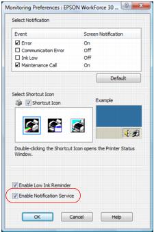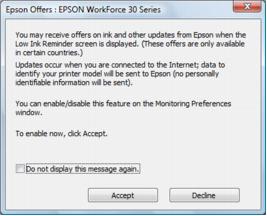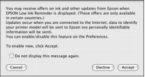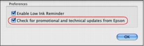 To disable checking for ink offers or updates from Epson, right-click the