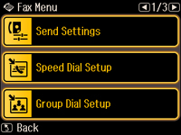 You can create a group dial list after creating a speed dial list. Each group dial list can include up to 30 fax numbers.
