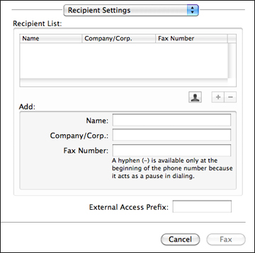 company, and fax number and click the + button.