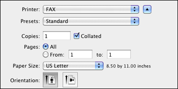 a fax from a Mac OS X printing program using the Fax Utility. You