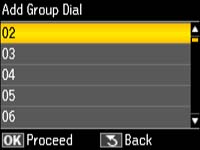 You can create a group dial list after creating a speed dial list. Each group dial list can include up to 30 fax numbers.