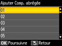 Sélectionnez le chiffre que vous souhaitez utiliser pour le numéro de télécopieur que vous ajoutez, puis appuyez sur le bouton