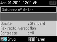 Utilisez les touches numériques sur le panneau de commande pour entrer le numéro de télécopieur. Vous pouvez saisir jusqu'à 64 caractères.