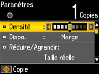 bouton fléché du bas. Le menu Copie s'affiche.